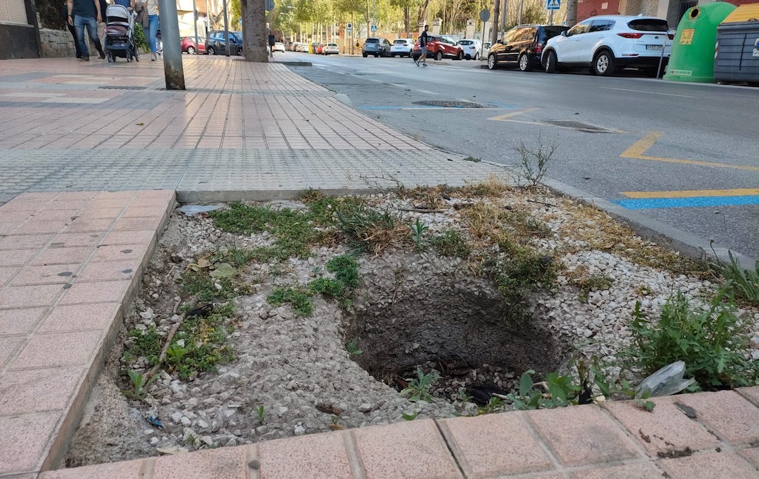 Un vecino se ha dirigido a nuestro ‘Buzón de los lectores’ para “sacar tarjeta roja al Ayuntamiento de Cartagena por el peligro que se da en la calle Ramón y Cajal por haberse arrancado un árbol y no protegerse el agujero que quedó, donde cualquier viandante puede sufrir un grave accidente", expone.