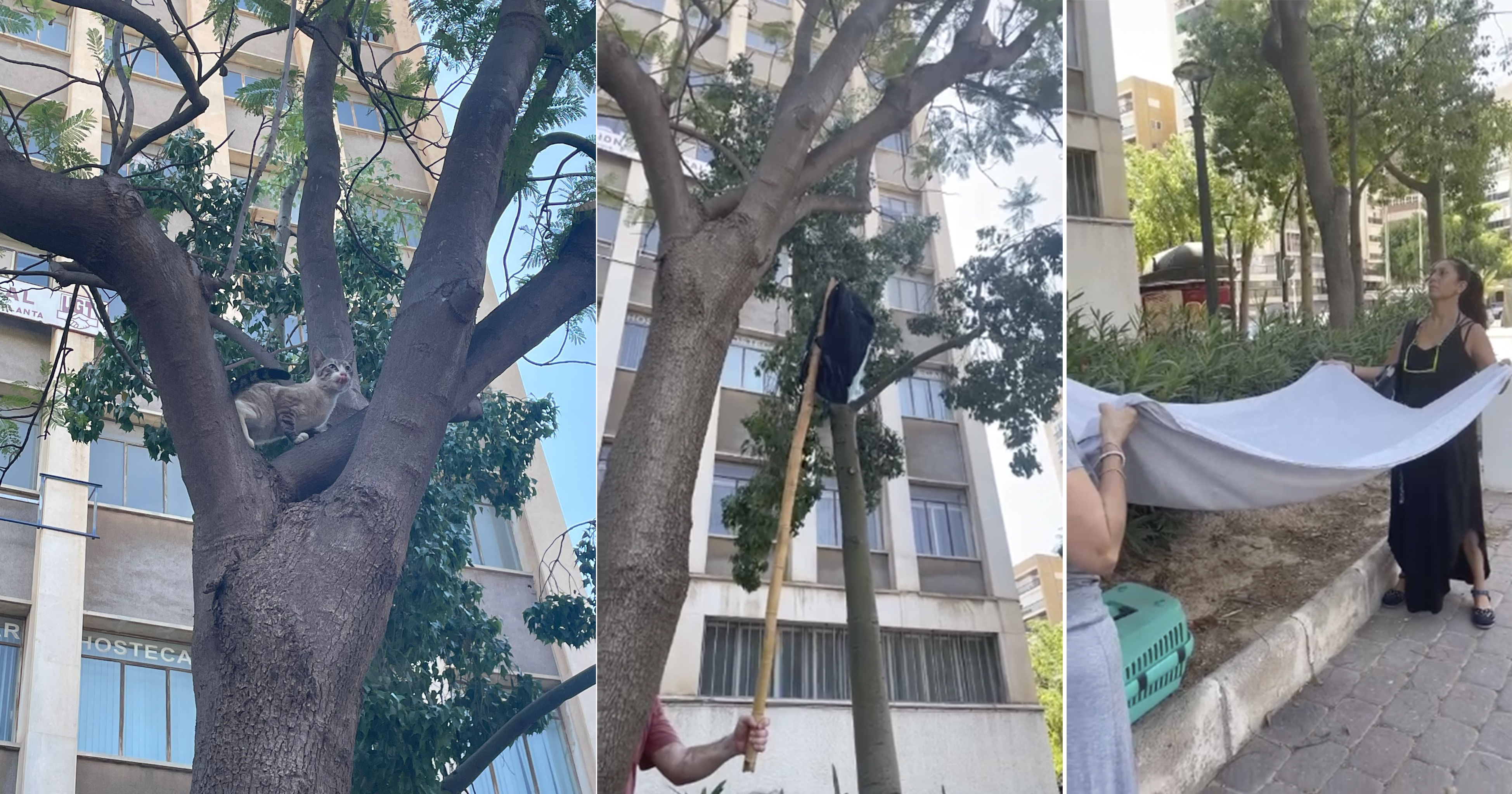 Un gato subió a un árbol del entorno de la plaza de España de Cartagena y luego no sabía cómo bajar. Sucedió la pasada semana y varios vecinos de la zona trataron de ayudarlo de diversas maneras. "También llamamos a los bomberos, pero nos dijeron quién pagaba el servicio, por lo que nos preguntamos si es que la 'Ley de bienestar animal', que protege a los gatos comunitarios, está o no en vigor en el municipio", indica una remitente.
