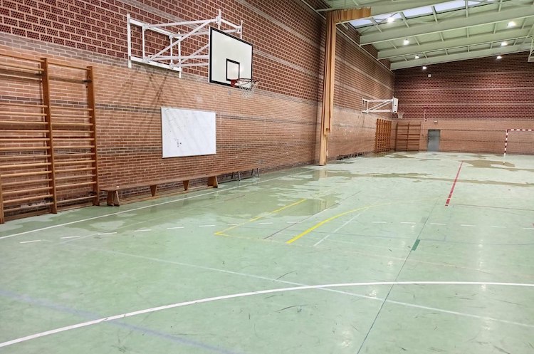 MC denuncia que desde hace dos años las goteras están presentes en la instalación deportiva cada vez que hay un episodio de fuertes lluvias, ocasionando que no se pueda utilizar la pista de juego.