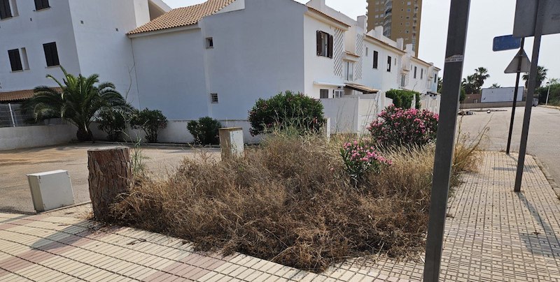 Ricardo Segado señala que los vecinos de Mar de Cristal siguen haciendo llegar sus quejas día a día: “personas que ni se pueden sentar en los bancos, invadidos por las plantas, parques descuidados, aceras intransitables y tendido eléctrico colgando de las farolas”.