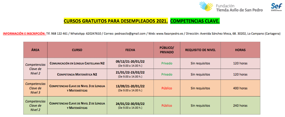 Fundación Tienda Asilo de San Pedro, con sede en la avenida Sánchez Meca de Los Campano, informa de los cursos que se llevarán a cabo en su centro después del verano.
