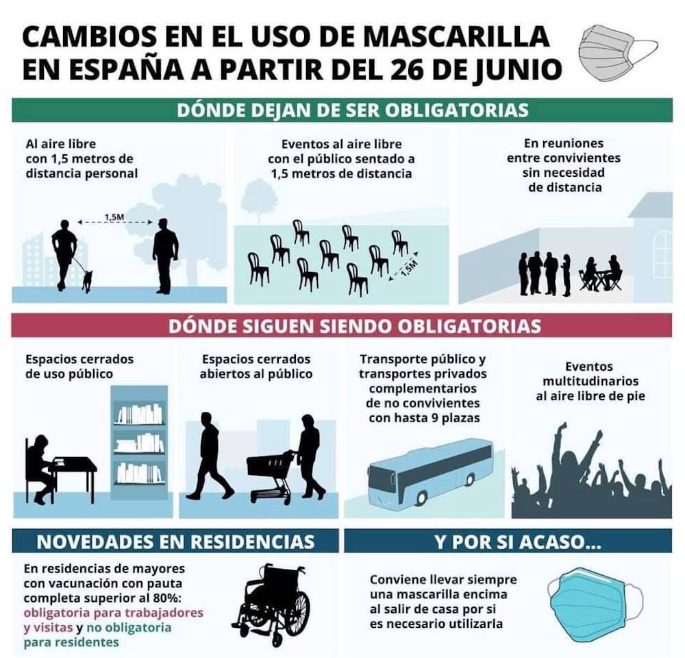 Desde hoy el uso de la mascarilla no es obligatorio en espacios abiertos siempre que se pueda mantener la distancia de seguridad sociosanitaria de metro y medio con personas no convivientes. Sin embargo, por si surgen esas ‘peligrosas’ aproximaciones, habrá que llevar un protector siempre encima para hacer uso en cualquier momento. El uso de la mascarilla en España viene desde que en marzo de 2020 irrumpió la pandemia del COVID-19, pero no fue hasta julio cuando se hizo obligatoria en España para mayores de 6 años de edad. Su uso sigue con esa obligación en interiores con personas no convivientes.