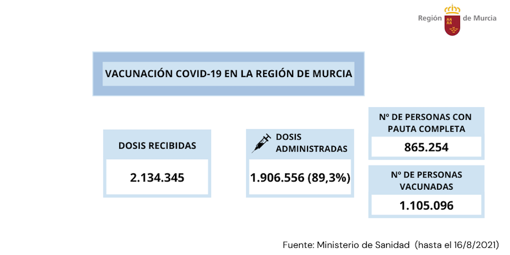 La vacunación con pauta completo se acerca a novecientos mil del millón y medio de residentes en la comunidad autónoma.