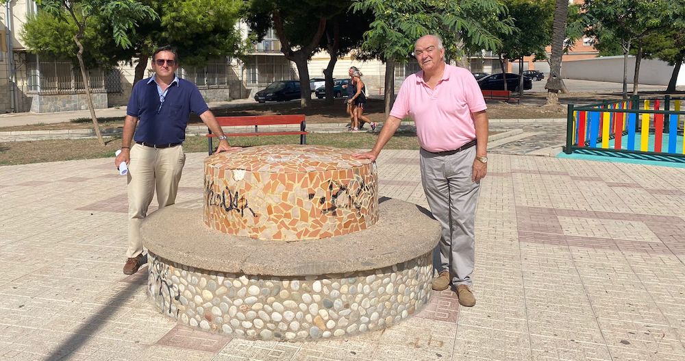 Los técnicos del Ayuntamiento de Cartagena, tras la correspondiente inspección de lugar, han autorizado a que la asociación deportiva y cultura El Pinacho instale una gran enseña de España en la plaza de la Marina Española, en el lugar donde posan el presidente del colectivo, Manuel Torres Paisal, y Jesús Vergara, gerente de SBA Infraestructuras, que será la encargada de elaborar el proyecto y de la colocación.