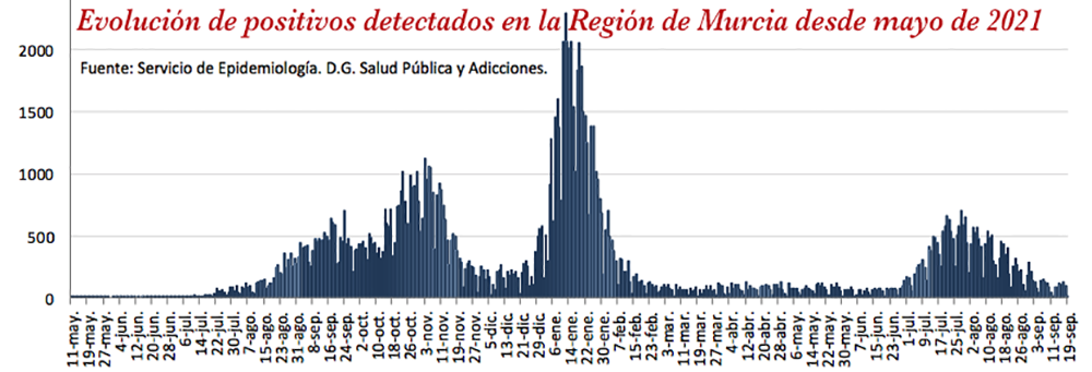 El consejero de Salud, Juan José Pedreño, informó de que la incidencia acumulada en la última semana epidemiológica descendió un diez por ciento respecto a la anterior. En este sentido, aseguró que la Región de Murcia mantiene una tendencia a la baja “aunque esta semana se aprecia menor descenso en todos los indicadores, por lo que insistimos en la prudencia”, subrayó Pedreño, que añadió que la incidencia a 14 días fue de 92,1 casos por cada 100.000 habitantes y de 44,5 a 7 días.