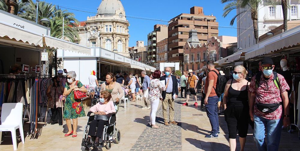 Los comerciantes de Cartagena abren sus tiendas durante unos días junto al puerto, en Héroes de Cavite, gracias al apoyo del Ayuntamiento. Cerca de medio centenar de establecimientos ofrecen descuentos de hasta el 70% en esta nueva edición de la Feria Outlet de Cartagena, informa el concejal de Comercio y teniente alcalde Manuel Padín.