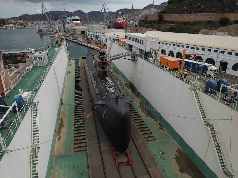 Una vez finalizadas las reparaciones de acero, así como todas aquellas relativas a equipos que necesitan que el submarino se encuentre fuera del agua (válvulas de casco y los tubos lanzatorpedos entre otros), se ha procedido a la puesta a flote del submarino para poder continuar con los montajes y, sobre todo, comenzar con las pruebas de equipos en puerto, estando prevista su finalización para finales de enero de 2022, momento a partir del cual comenzará una fase pruebas en la mar.