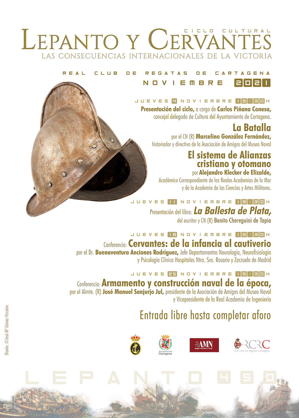 El real club de regatas acoge el ciclo cultural 'Lepanto y Cervantes: Las consecuencias internacionales de la victoria' los días 4, 11, 18 y 25 de noviembre, a partir de las 19.30 horas, con conferencias y presentación de libros. Entrada libre hasta completar aforo.