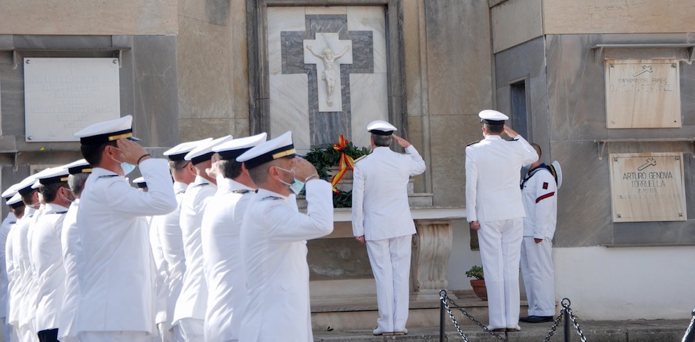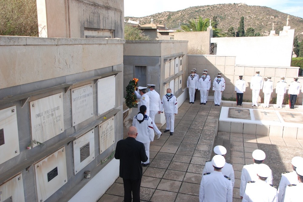 El cementerio de Nuestra Señora de los Remedios de Santa Lucía ha acogido esta mañana del 2 de noviembre, 'Día de los difuntos', un acto de homenaje y recuerdo por parte de la Armada en el panteón que la institución tiene en el camposanto.