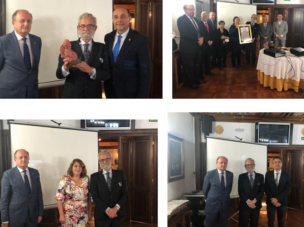 La Comisión Organizadora entregó al Doctor una caricatura realizada por el caricaturista cartagenero Kiko Bueno, en cuyo reverso se incluye el Curriculum