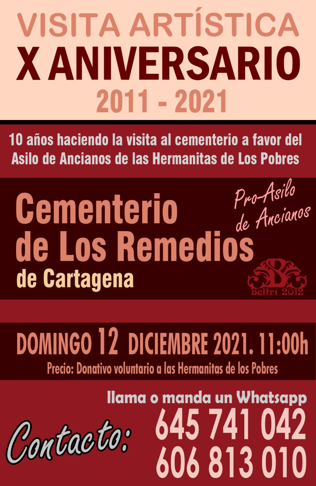 La Comisión Beltrí 2012, asociación constituida para reivindicar la figura del arquitecto Víctor Beltrí y el Modernismo de Cartagena, cumple una década realizando visitas al cementerio de Los Remedios a favor del Asilo de Ancianos de Cartagena. Para festejarlo, el domingo a las 11 de la mañana organizará una nueva visita.