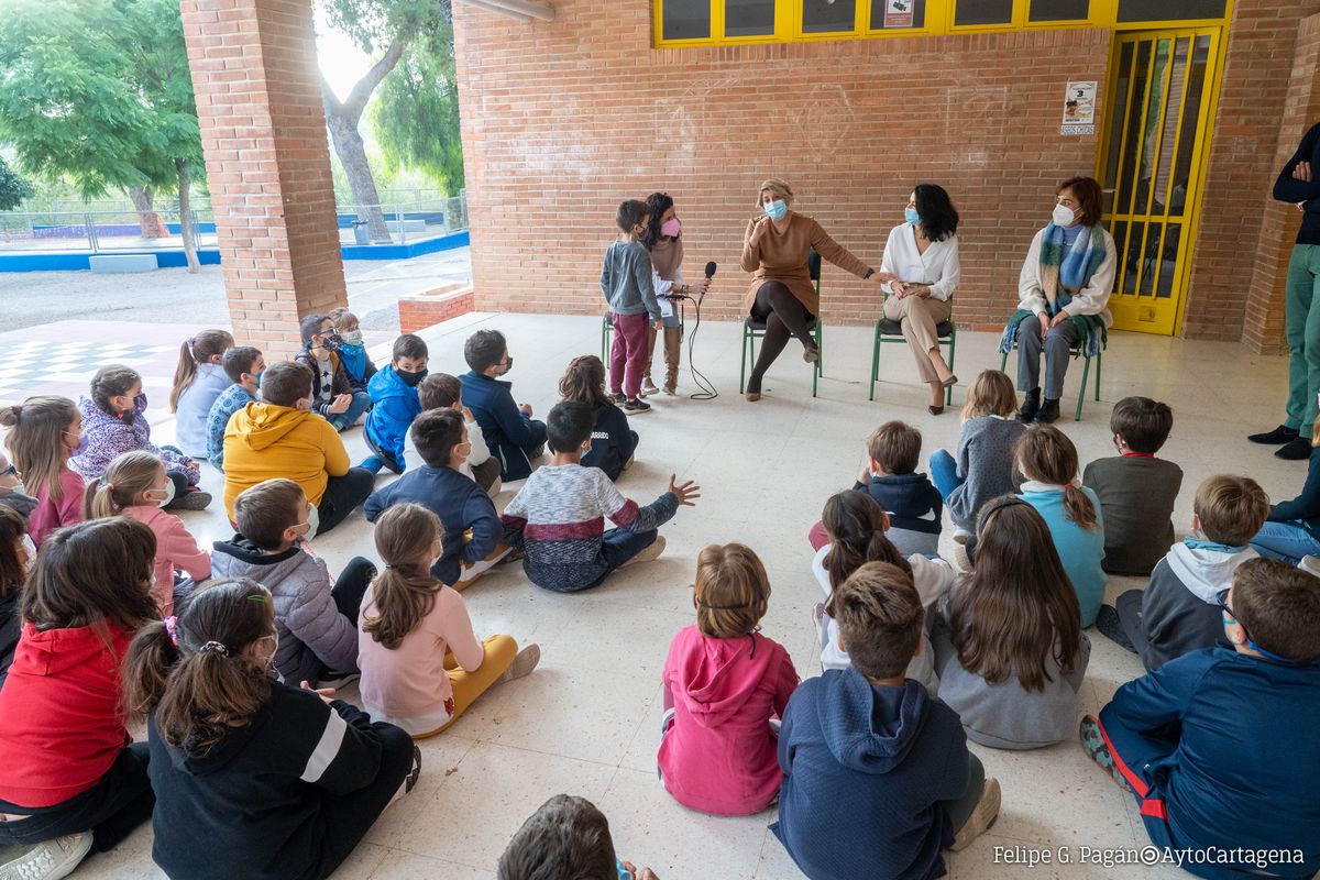 La alcaldesa Noelia Arroyo les ha visitado y les ha explicado su funcionamiento. Arroyo ha estado acompañada de la concejal de Educación, Irene Ruiz, ha formado parte del currículo escolar de 2º de primaria de casi 50 escolares de este centro, que han dedicado la última semana a estudiar y conocer el municipio de Cartagena: sus instituciones, servicios, monumentos y gastronomía, que ya han recibido de forma previa a la visita de la primera autoridad municipal.