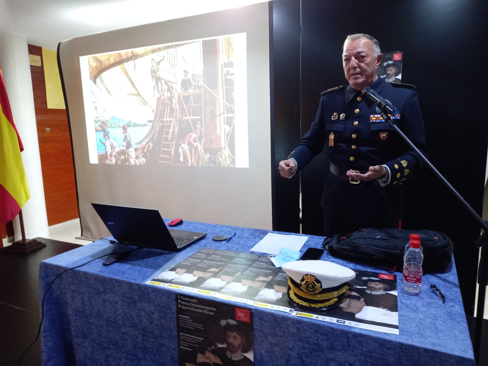El coronel de Infantería de Marina, José Cánovas García, actualmente Consejero colaborador del Instituto de Historia y Cultura Naval, ofreció una conferencia en el restaurante Mare Nostrum, sobre la primera Circunnavegación de Juan Sebastián el Cano, con motivo de la los actos que se están celebrando por toda España, para conmemorar el V Centenario de esta gesta.