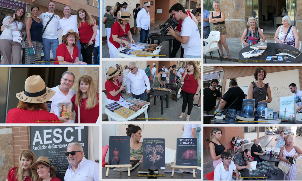 Antonio Vidal (Gorri), Isa (Tali Rosu), Rosa García Oilver, Mercé Sanchiz, Julia Moreno, Javier Caballero, Marián Pérez, Estrella Monreo, Emma Kent, Mercedes Aróstegui, José Higino, Jesús Gómez, Víctor Morata, David Ruiz Zamora, Pedro Nicolás Aroca, María Pilar Conn, Rosa Raya Carrasco, Jesualdo Moreno, Sara Martín y Javier L Moreno fueron los escritores participantes en una iniciativa de la reactivada AESCT, que este año está aumentando de forma progresiva su presencia en la sociedad cartagenera con un balance satisfactorio a mitad e 2022, destacaban a este diario Carlos Dosel y Juan Tébar, respectivamente, presidente y tesorero de la asociación cartagenera de escritores.