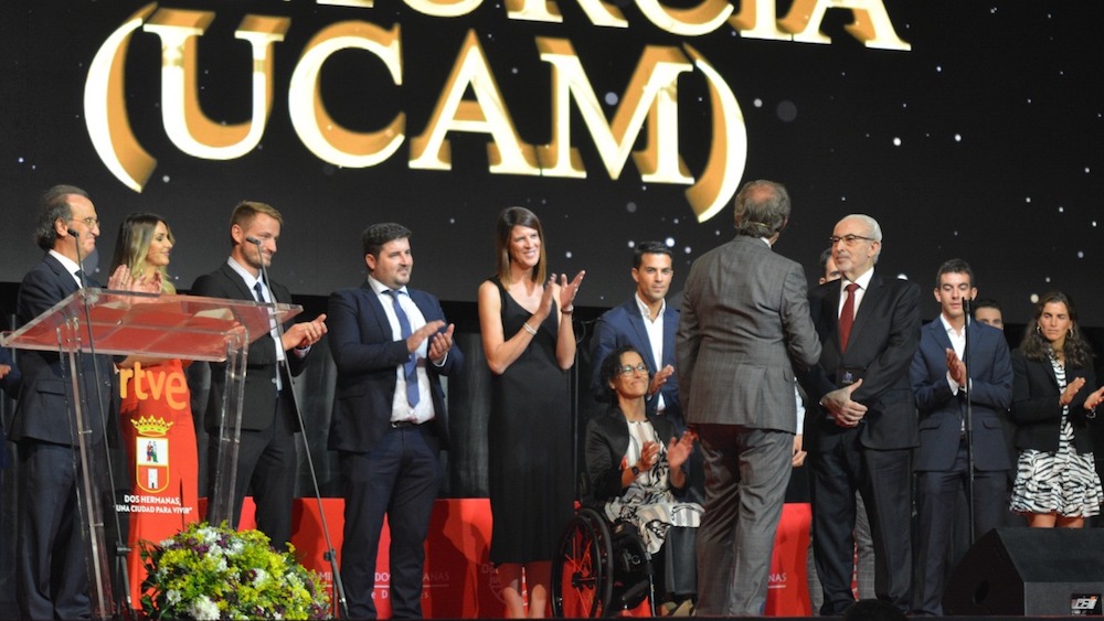 En la Gala Nacional del Deporte, organizada por la Asociación Española de la Prensa Deportiva, José Manuel Franco, presidente del Consejo Superior de Deportes, destacó el trabajo de la Universidad Católica de Murcia, que fue premiada por sus 25 años de apoyo a los deportistas. José Luis Mendoza, presidente de la UCAM, recogió el galardón.