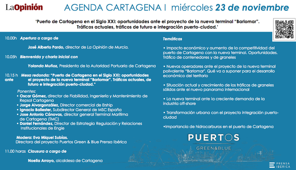 Es el título del foro organizado este miércoles por el diario La Opinión de Murcia, en la que se habrá de oportunidades ante el proyecto de la nueva terminal Barlomar, tráficos actuales, tráficos de futuro e integración puerto-ciudad.