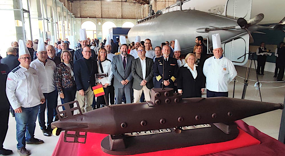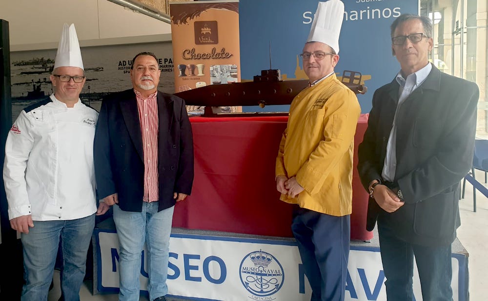 La idea surgió en un encuentro entre empresarios de la restauración y de la hostelería de la Región de Murcia y esta mañana ha sido presentada la más dulce arma submarina conocida en la sala 'Isaac Peral' del Museo Naval, donde se exhibe el auténtico sumergible, con presencia de numerosas personalidades, como el director general de Comercio e Innovación Empresarial, Miguel Ángel Martín; el teniente de alcalde del Ayuntamiento de Cartagena, Manuel Padín; la presidenta de COEC, Ana Correa; y el presidente de la Cámara de Comercio de Cartagena, Miguel Martínez, entre otros.