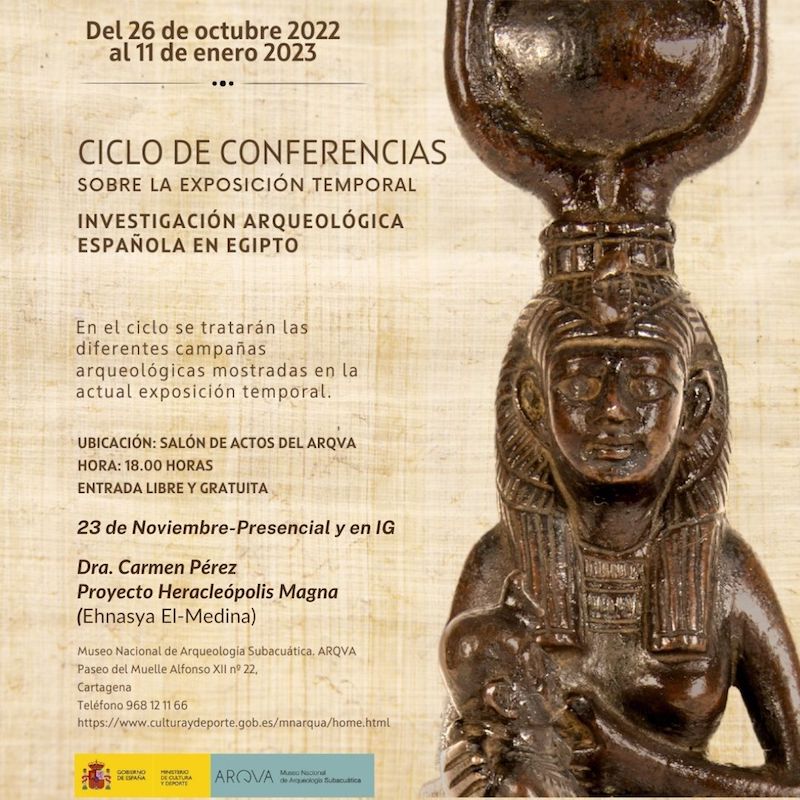 El Museo Nacional de Arqueología Subacuática continúa con el ciclo de conferencias en torno a la exposición temporal 'Investigación Arqueológica Española en Egipto' y este miércoles, a las 18 horas, tendrá lugar una conferencia sobre el proyecto 'Heracleópolis Magna, Ehnasya el-Medina', que será impartida por Carmen Pérez Díe, egiptóloga, conservadora e investigadora.