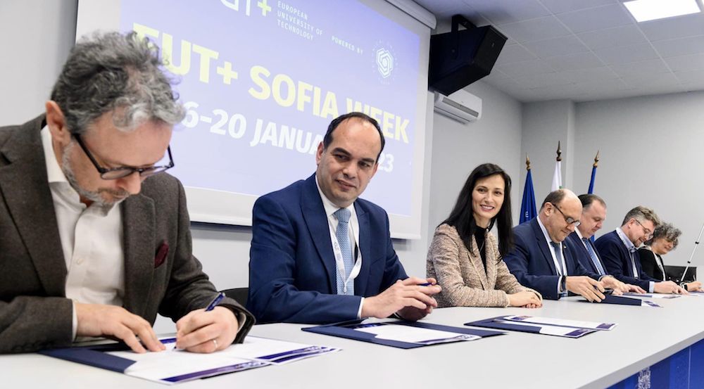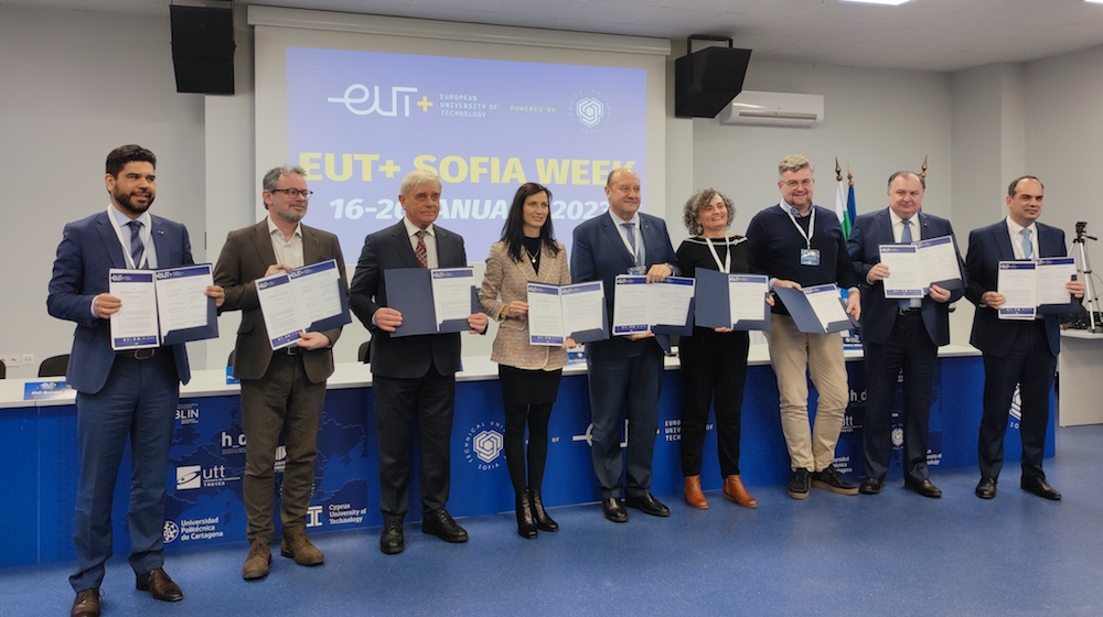 La rectora de la UPCT y sus siete homólogos de las otras politécnicas que conforman la European University of Technology (EUt+) firmaron ayer este acuerdo en Sofía, Bulgaria. El alumnado de doctorado podrá participar del programa de movilidad Erasmus.