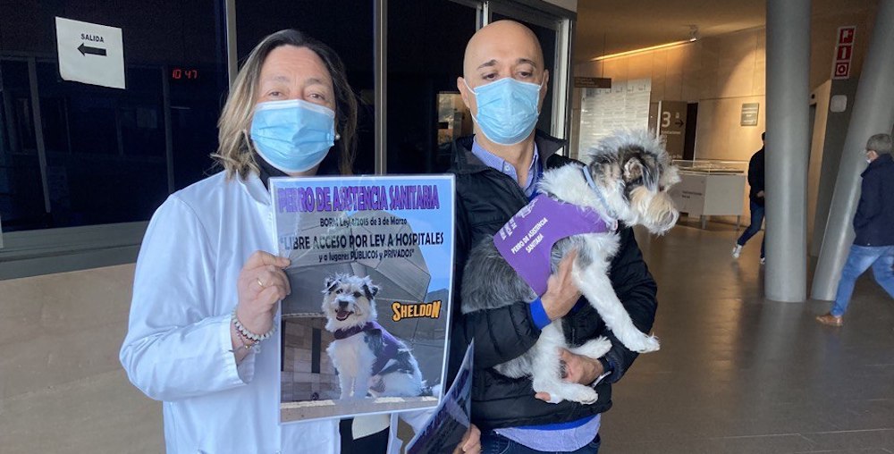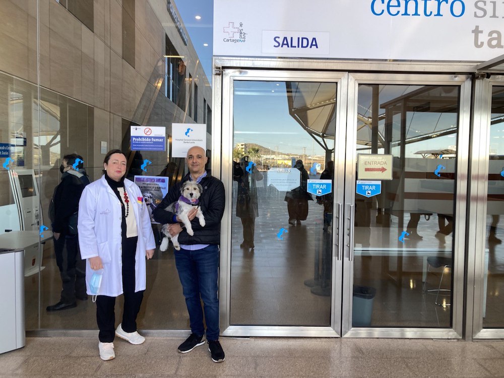 La directora médico del Área de Salud de Cartagena, Carmen Santiago, ha estado junto a Jorge Conesa Garcés de los Fayos, fundador de la Asociación Sheldon y presidente de Sheldon Running Club, colocando cárteles en el Hospital de Santa Lucía que informan al público de la existencia de los perros de alerta médica que pueden acompañar a sus dueños a cualquier parte, hospitales, transportes, etc., siempre que estén reconocidos oficialmente por ley.