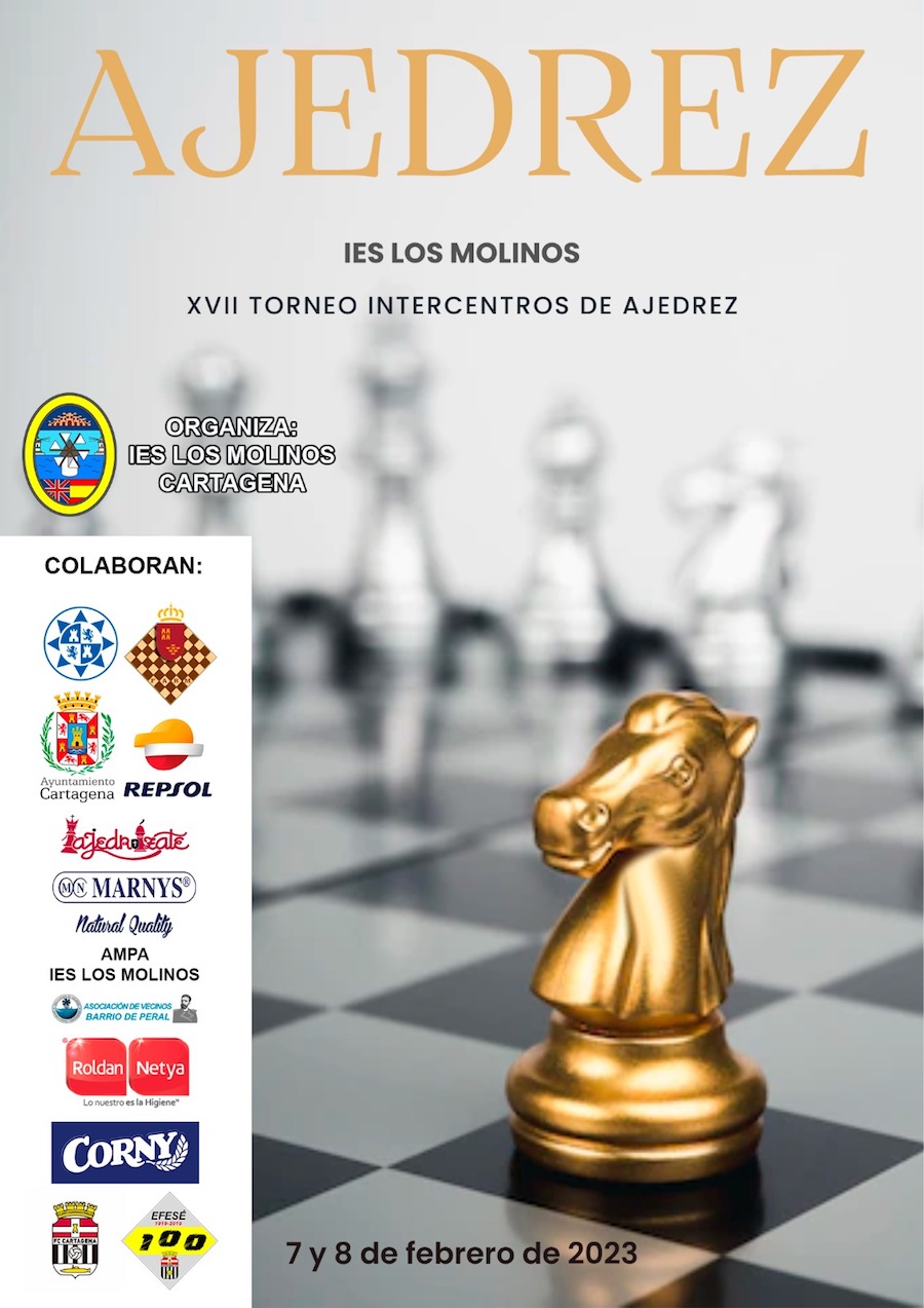 El instituto cartagenero IES Los Molinos acogerá los días 7 y 8 de febrero un torneo de ajedrez en el que participarán doscientos treinta y cuatro estudiantes de centros educativos de toda la Región de Murcia.Este Torneo Intercentros de Ajedrez, el único organizado por un Instituto y en horario escolar de la Región de Murcia, vuelve tras el parón obligado por la pandemia y celebra su decimoséptima edición, que ha vuelto a cosechar una alta participación de alumnado de Primaria, Secundaria y Bachillerato, veintiséis centros entre colegios e institutos.