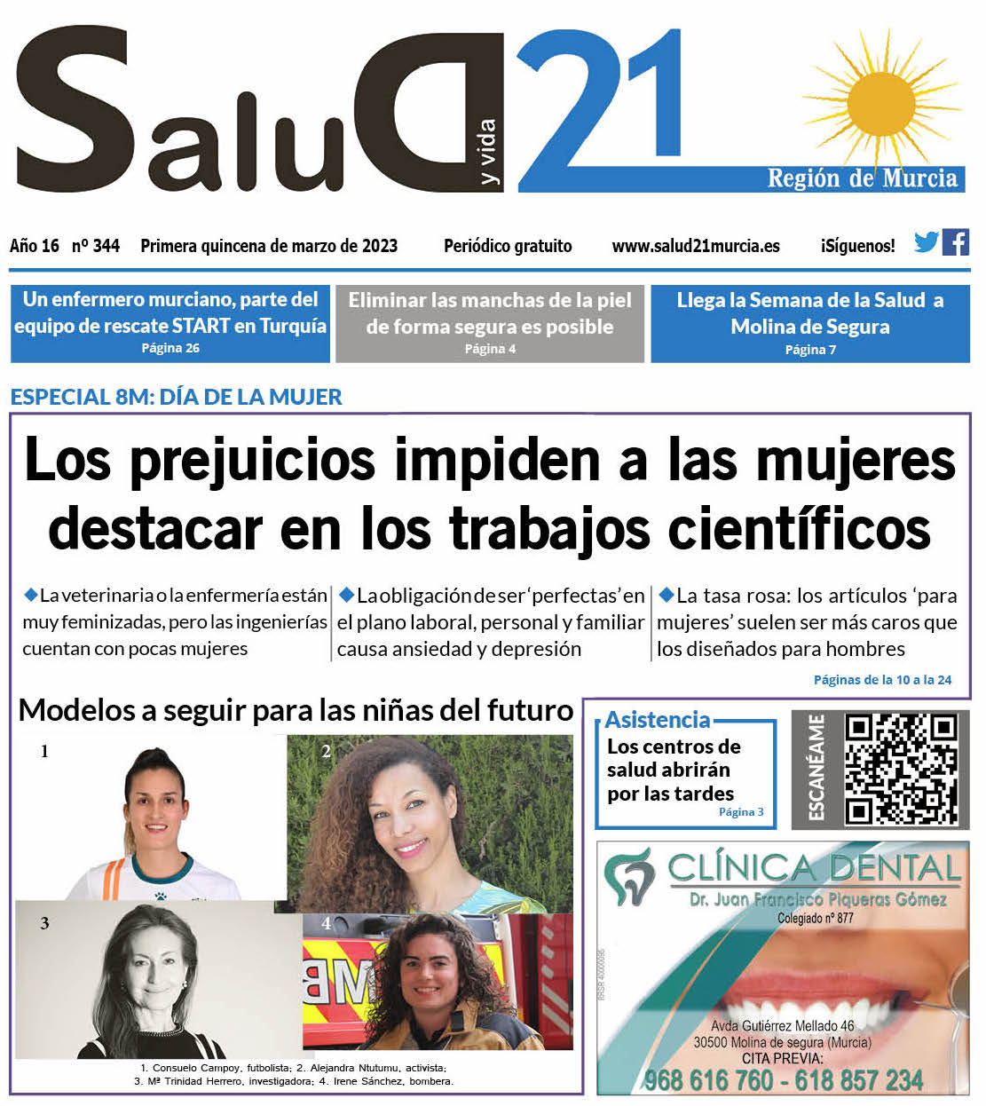 La publicación quincenal de la Región de Murcia sobre asuntos de salud llega a su número 344, figurando entre otros temas la noticia de que los centros de salud abrirán por las tardes.