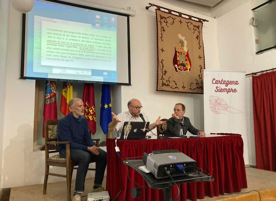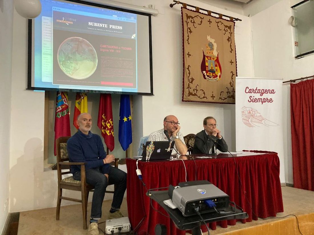 Espectacular exposición de Aureliano Rodríguez sobre la época Musulmana, donde demuestra con datos objetivos y contrastados esa afirmación durante la celebración de la conferencia 'Tres nombres para entender un mismo acontecimiento: Qayrawan-Cartagena-Tudmir', organizada por la asociación 'Cartagena siempre' en la Real Sociedad Económica de Amigos del País.