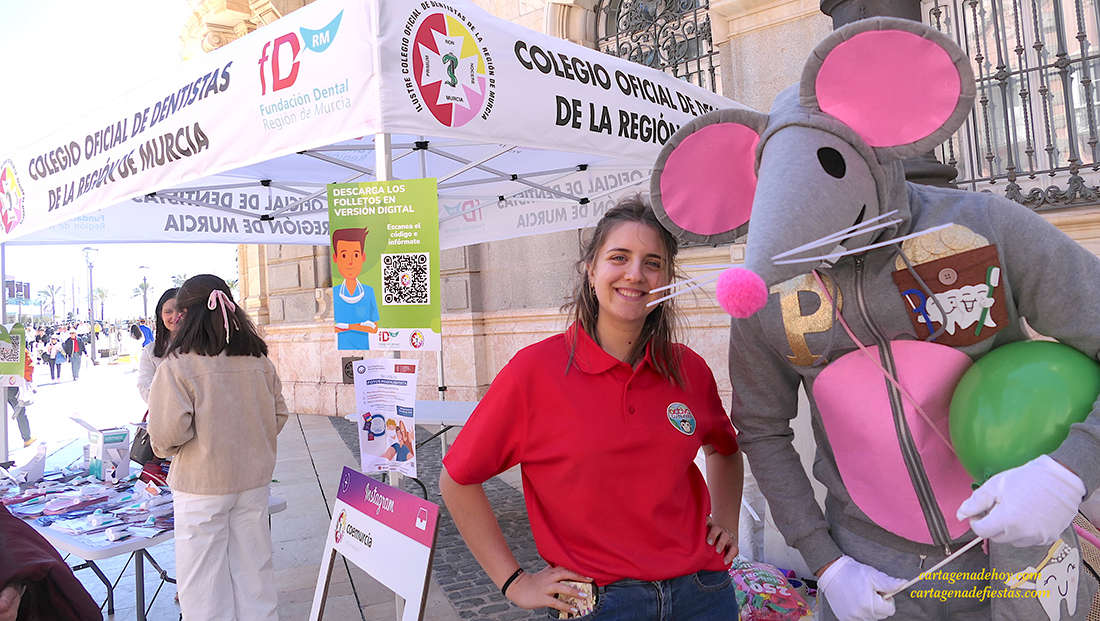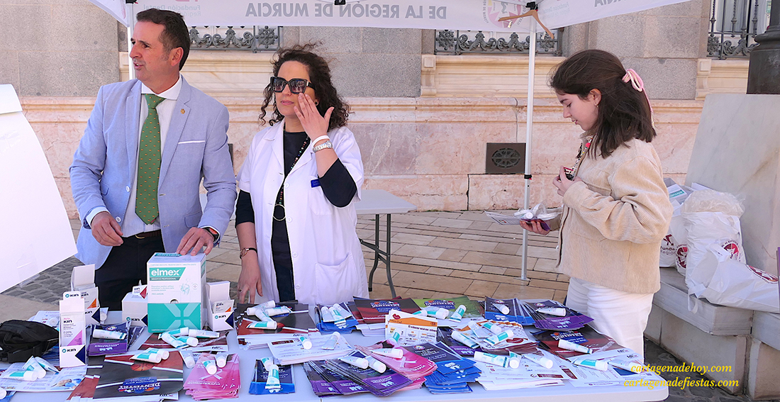 El Colegio de Odontologos y Estomatologos de la Región de Murcia ha instalado hoy una carpa en la plaza del Ayuntamiento de Cartagena para concienciar, informar y resolver dudas sobre la salud bucodental a la ciudadanía.