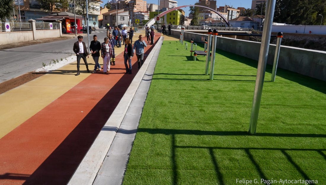 Los trabajos de la tercera fase de Espacio Algameca que desarrolla el Ayuntamiento de Cartagena siguen avanzando con la construcción del carril bici, la plantación de especies autóctonas seleccionadas con la ayuda de Anse y Arba, y que incluyen una zona de calistenia, preparándose otra para Nueva Cartagena, cuya instalación se llevará a cabo después de Semana Santa.