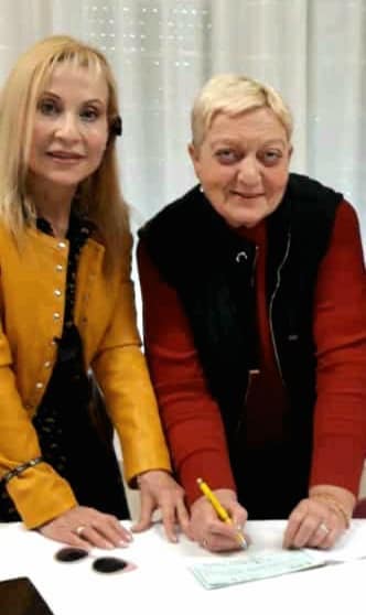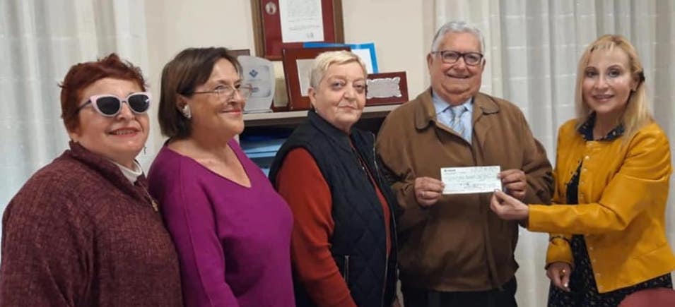 La presidenta, Chelo Cánovas, y la tesorera, Margarita Martínez, de la asociación 'Amigos de la zarzuela de Cartagena', han entregado a Vicente Villar, presidente de la Hospitalidad de Santa Teresa, el cheque con la recaudación del espectáculo de zarzuela ofrecido el 24 de marzo.