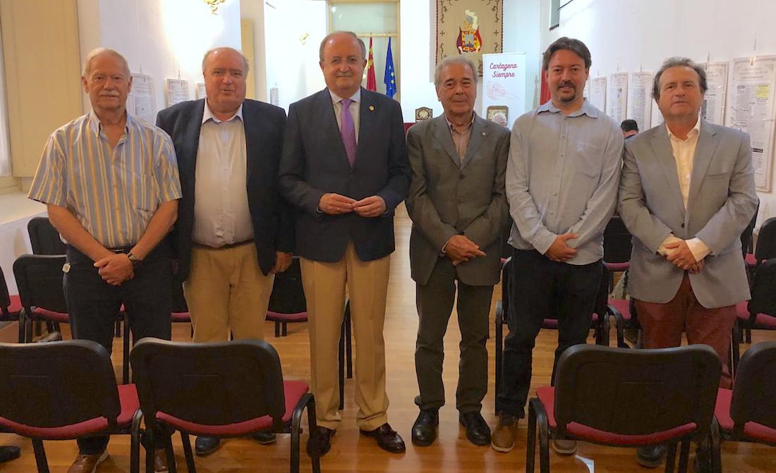El cartagenero Santiago García, en un acto de la asociación cultural 'Cartagena siempre' que tuvo lugar en el Casino fue presentado por Tomás Martínez Pagán, habló de los relatos y leyendas que recogen sus obras publicadas sobre los camposantos de Cartagena, La Unión y Murcia.