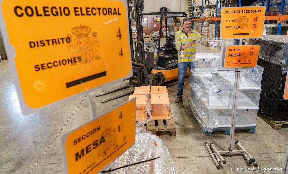 En el almacén municipal es donde se guardan las urnas y cabinas que ahora se reparten entre los 93 locales y colegios en los que se podrá votar. Concretamente, ya se han montado las cabinas y a partir de este viernes se trasladarán las urnas, dos por cada mesa, y las papeletas a cada centro, labor que lleva a cabo personal de las brigadas municipales.