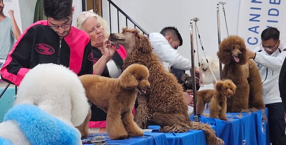 La primera jornada acogió una concentración caniche en la que la madrina del evento, María Eugenia Ribelles, fue la presentadora y la que ofreció, mientras los artistas de la tijera trabajaban el pelo de los perros, una serie de consejos para el buen cuidado del, para muchos, 'mejor amigo de las personas'. Así, por ejemplos, expuso el riesgo que tiene el animal si no le cortan bien las uñas, que no hay que comenzar lavándolo dándoles un enjuague de agua o, entre otros, que hay que evitar que la humedad permanezca en su pelo, el cual es vital para ellos debido a que su piel no transpira y el papel lo ejerce ese vello. Hay que apuntar que la labor de los peluqueros caninos va desde crear belleza o creatividad trabajando el pelo hasta los cuidados del animal, como es el baño. La segunda jornada acogió un concurso de belleza canina, que fue puntuable para el campeonato regional.