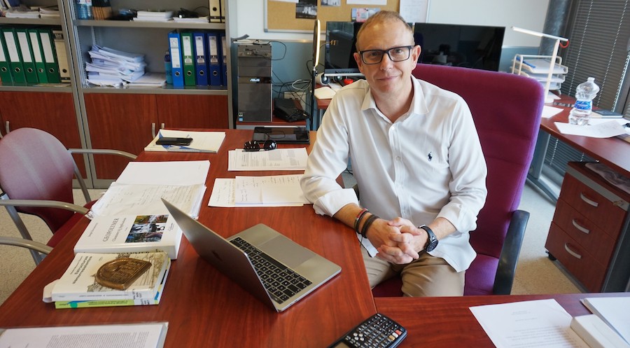 Investigadores de la Escuela de Arquitectura y Edificación proponen materiales sostenibles e innovadores en los que se utilizan como material cementante residuos de construcción. En la foto, Carlos Parra, investigador principal del grupo y director de la Escuela de Arquitectura de la UPCT.