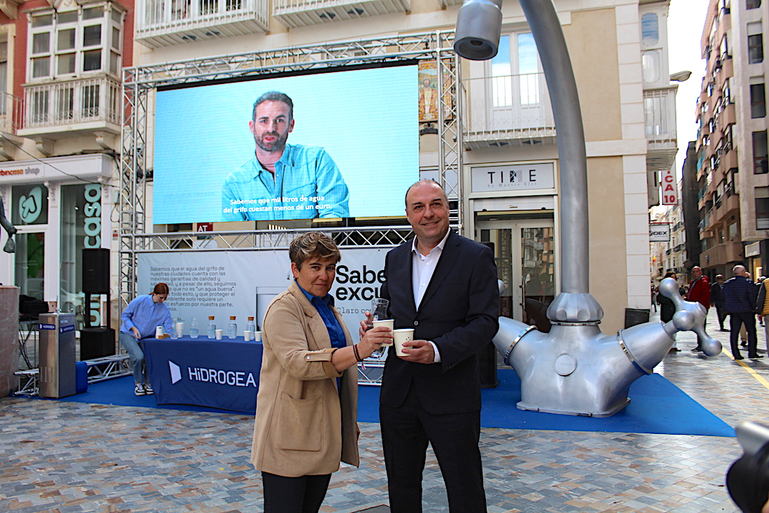 El agua de Cartagena es de gran calidad y cuenta con numerosas propiedades. Así de claro. no caben excusas para no tomarla y, además, sabe bien. "Está sometida a continuos controles de calidad, a los que se somete, los 365 días del año, convirtiéndola en un alimento seguro", han indicado la edil de Consumo y Comercio, Belén Romero, y el gerente de Hidrogea, Andrés Martínez, quienes han presentado el inicio dela campaña 'Sabe a excusa. Claro como el agua' para animar a la población a beber agua del grifo. El lugar ha sido la plaza de San Sebastián de Cartagenera, donde se ha instalado un gigantesco grifo, se ha obsequiado con vasos de agua a los viandantes y se ha proyectado en pantalla gigante un sport en la que conocidos rostros aconsejan beber agua corriente directamente del grifo, sin necesidad de filtros. 'Del grifo a la boca' con todas las garantías y el buen sabor.