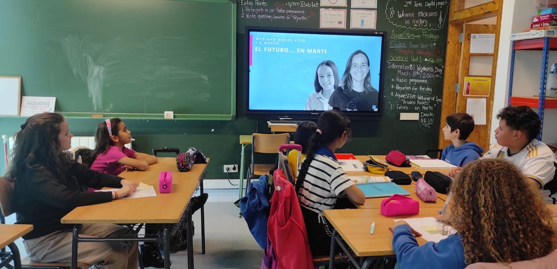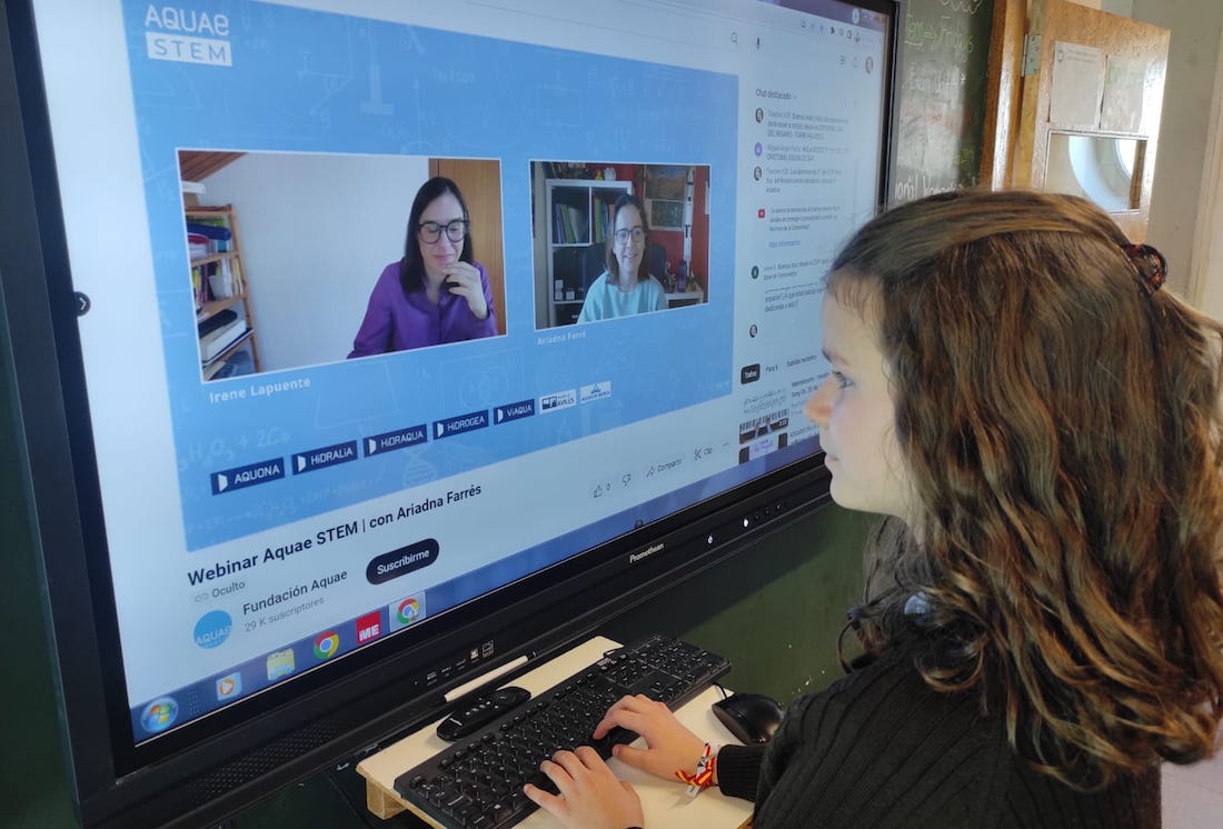 Los webinars de Aquae STEM están dirigidos a los 46 colegios de toda España que participan en el programa y habitualmente reúnen en cada sesión a más de 1.000 alumnas de Primaria. Gracias a estos webinars, las alumnas pueden conocer e interactuar con mujeres profesionales destacadas en campos de estudio técnicos y científicos. De este modo, se intenta hacer frente a una de las causas por las que las niñas no se sienten atraídas por las carreras STEM, que es la falta de visibilidad de referentes femeninas en estos campos.