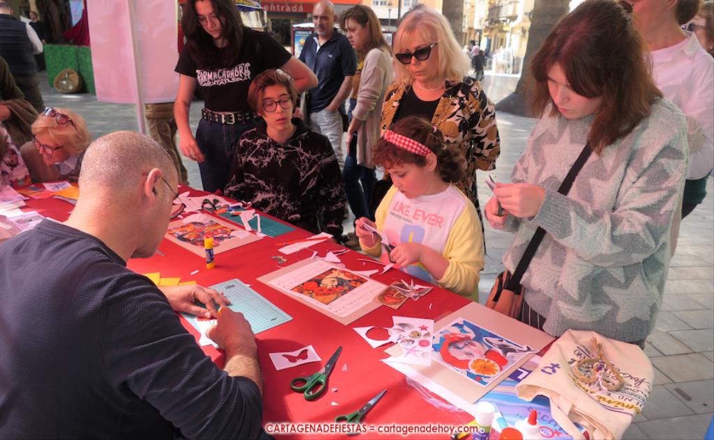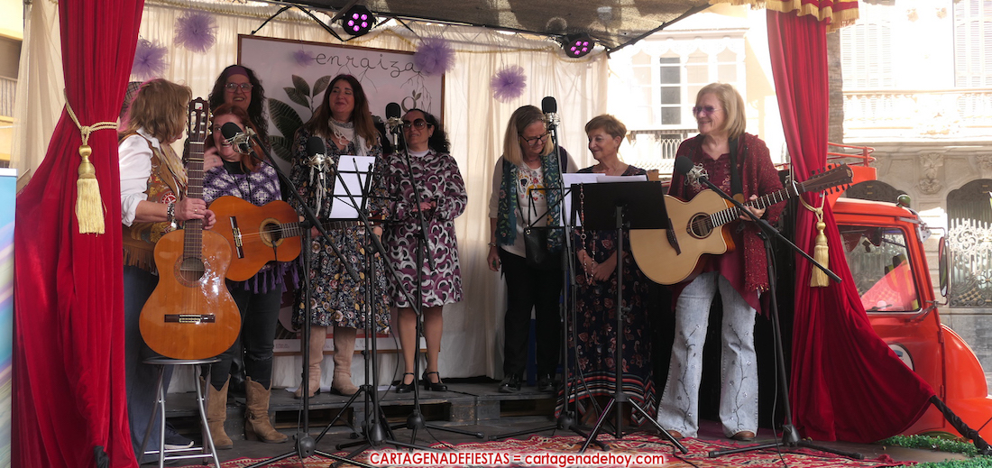 La Universidad Popular de Cartagena ha llevado a cabo una exhibición de sus talleres en un encuentro con el arte que se ha desplegado en la glorieta de San Francisco y que ha estado enriquecido por las actuaciones ofrecidas desde el escenario móvil de 'El remolino'.