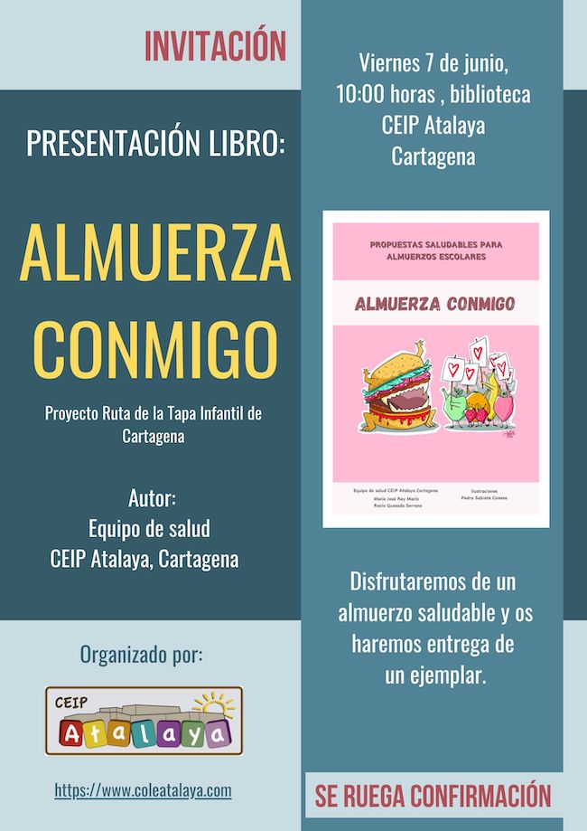 Es el título del libro que será presentado este próximo viernes, a las diez horas de la mañana, en la biblioteca del colegio Atalaya, centro ubicado junto al Palacio de Deportes. Elaborado por un equipo de salud, incluye propuestas saludables para almuerzos escolares.