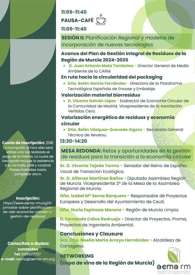 La Jornada pretende sintetizar las nuevas estrategias legislativas referentes a la gestión de los residuos, sobre todo en lo concerniente a la nueva fiscalidad y costes de gestión y abundar en las tecnologías existentes y a implantar para conseguir los objetivos marcados por la legislación vigente, y todo ello con el objeto de conformar las nuevas tendencias en la planificación y gestión de residuos en la Región.