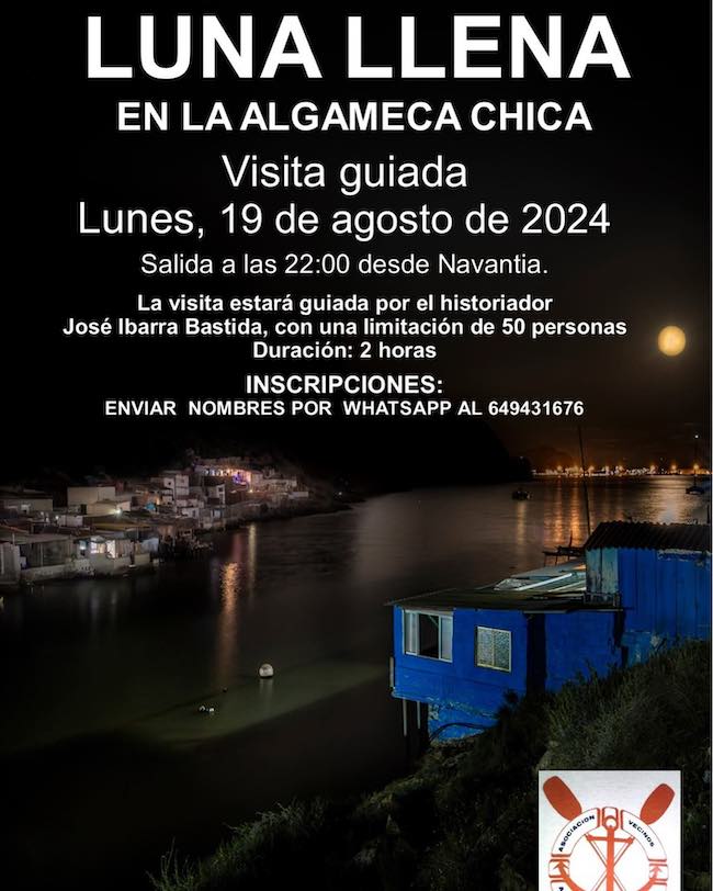 Leer más...La Algameca Chica organiza una visita guiada (por el historiador José Ibarra) bajo la luna llena para el próximo 19 de agosto a partir de las diez de la noche. Durará dos horas y tiene límite de cincuenta personas.