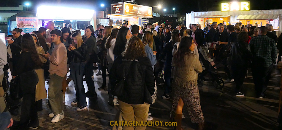 Más de mil personas en la plaza de Juan XXIII con la ópera en directo, con cientos de visitantes al 'Street Food Market' del puerto (la foto superior está tomada a las 21.25 horas) y con las terrazas de (casi) todos los bares del casco antiguo a tope, además de que aún no se habían recogido bastantes de los que habían participado en las procesiones de la Virgen del Rosario y de Judas Tadeo. Es evidente que 'hay gente para todo' y sólo es cuestión de proponer ofertas atractivas. A partir de ahí, cada uno elige o da preferencias a unos sobre otros. En Cartagena, es un hecho que 'el gran clásico del fútbol español' no pudo con la oferta que la ciudad ofreció este sábado noche. Pero es más, si salimos de la ciudad, en El Algar también este periódico de Cartagena y su gente pudo comprobar como varios cientos de personas disfrutaban, también durante el partido, con el gran túnel de 'Halloween'.