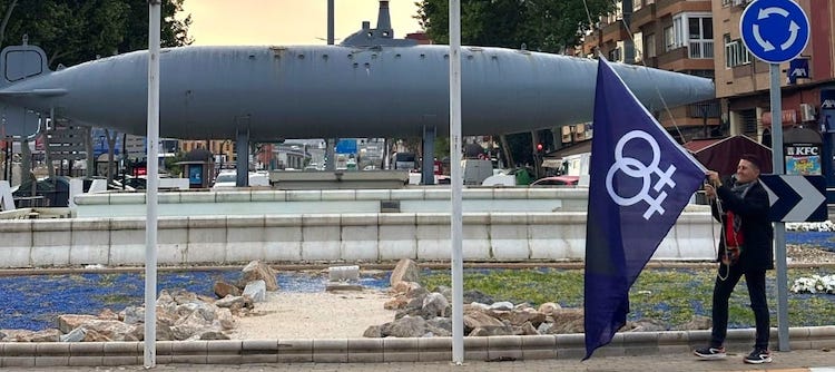 El 26 de abril se conmemora el 'Día de la visibilidad lésbica', reivindicación a la que se suma la Asociación Colectivo 'Galactyco', de gais, lesbianas, bisexuales y trans de Cartagena y Comarca. En la foto, el iado hoy de la bandera alusiva en la rotonda del submarino, en el paseo de Alfonso XIII.