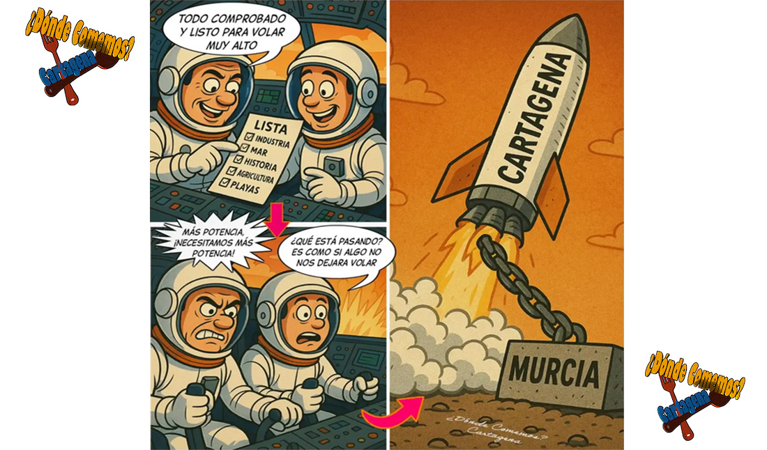 Hay quienes piensan que Cartagena no sube más porque lo impiden desde Murcia. Este asunto lleva a Enrique Costa y Aida Belmonte, del portal '¿Dónde comemos?, Cartagena', a ofrecer una nueva crítica y sarcástica viñeta a los lectores.