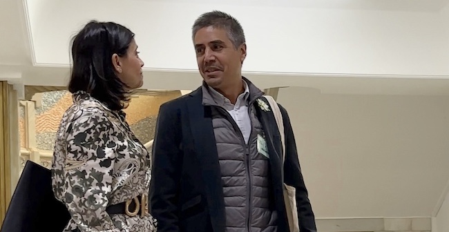 MC afirma que el gobierno de López Miras "mantiene secuestrados fondos estatales destinados a los municipios, apropiándose de unos recursos que pertenecen legítimamente a nuestro municipio y a todos sus vecinos (...) Más de trescientos millones de euros de la diputación provincial que se quedan en San Esteban", indica Giménez Gallo, a quien se observa con su compañera de partido Esther Guzmán.