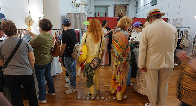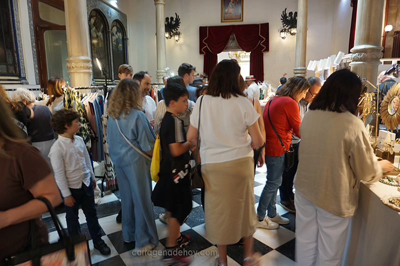 'Mercado del encanto' se celebró con éxito de visitantes durante el pasado fin de semana en el edificio del antiguo palacio del siglo XVIII del Marqués de Casa Tilly, en la calle Mayor de al ciudad de Cartagena, con puestos de moda diseño y artesanía. En la foto se observa una de la salas con presencia de modernistas cartageneros, que pusieron colorido a la iniciativa.