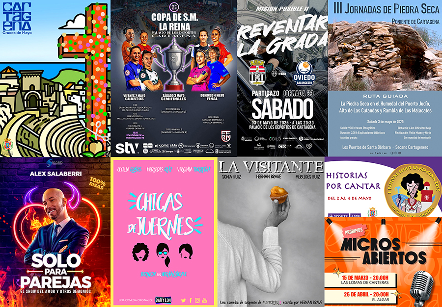 Además, la Copa de la Reina de Fútbol Sala en Cartagena; así como encuentros deportivos, como el que disputa para entrar en el play off a ACB el Odilo FC Cartagena CB este sábado, a las 20:30 horas, en el Palacio de Deportes o la semifinal de Champions que el Jimbee de fútbol sala juega en Le Mans este viernes, también marcarán la agenda de actividades, que incluye planes para toda la familia en el centro de la ciudad, barrios y diputaciones.