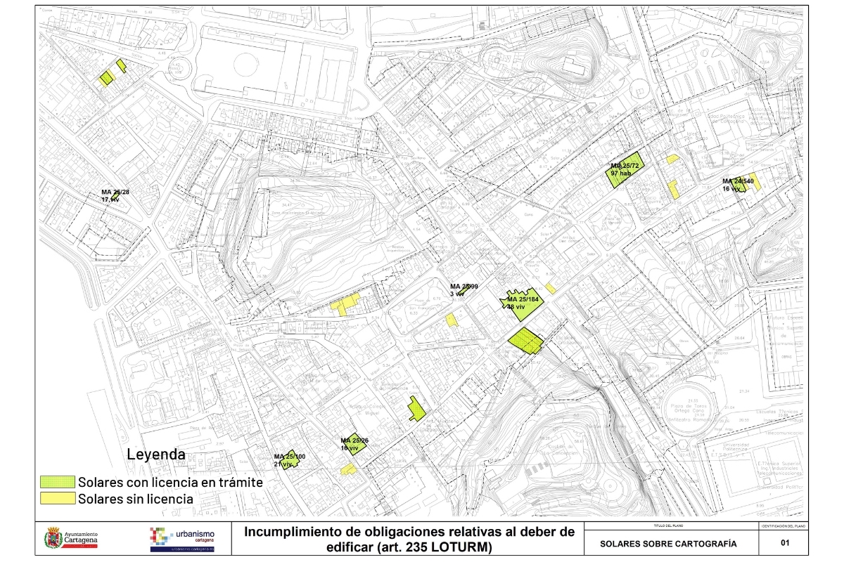 Los propietarios de 25 solares de los 41 sobre los que el Ayuntamiento de Cartagena inició expediente de venta forzosa por llevar años paralizados han presentado solicitud de licencia que supondrá la construcción de un total 170 viviendas, locales comerciales, aparcamientos y una residencia de estudiantes con 97 habitaciones.