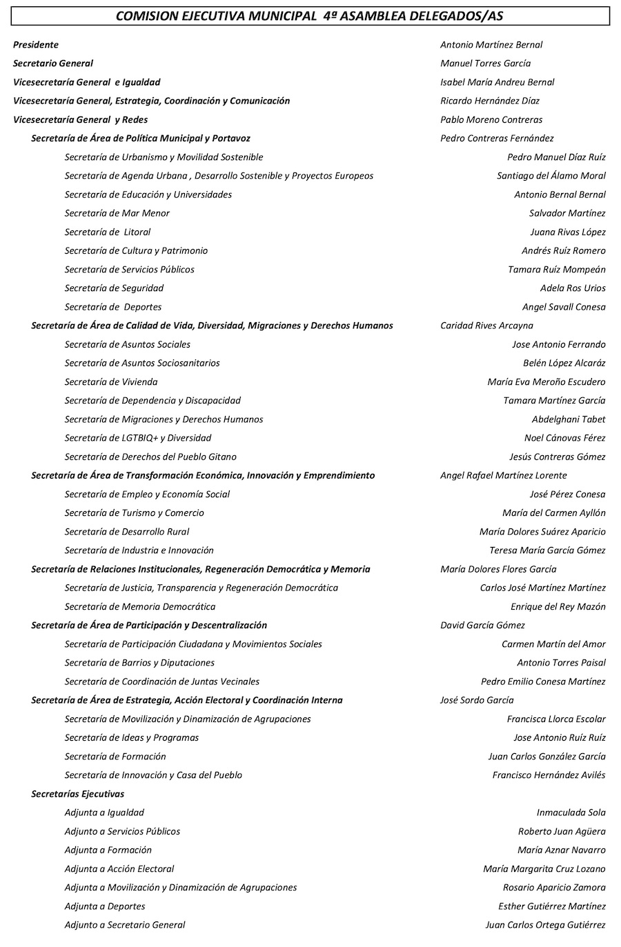 El PSOE de Cartagena inicia una nueva andadura con Manolo Torres reelegido como secretario general y un proyecto renovador con el objetivo de construir una Cartagena más justa, igualitaria, acogedora y solidaria, frente al inmovilismo y la paralización del Gobierno de PP y Vox.