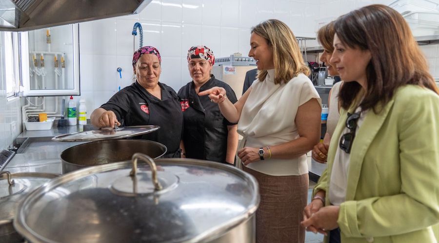 La consejera de Política Social, Conchita Ruiz, visitó hoy las nuevas instalaciones, puestas en funcionamiento desde hace un mes, junto con la concejala de Bienestar Social del Ayuntamiento de Cartagena, Cristina Mora, y el presidente de la Fundación, Alonso Gómez. Un servicio al que acuden, diariamente, 40 personas vulnerables para recoger la comida y cena del día, compuesta por ensalada, guiso, fruta y lácteos, como también para atender las necesidades de alimentación de las hasta 70 personas que pueden pernoctar en el albergue.