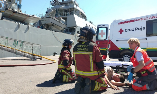 Ochocientos efectivos de la Armada, además de efectivos de más de sesenta organismos e instituciones con competencias en el ámbito marítimo, han participado en los ejercicios que se han llevado a cabo por diferentes localidades costeras de España para mejorar la coordinación ante las amenazas actuales. En la foto, escena de Cartagena